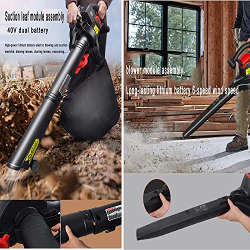 - Le module d’aspiration de feuilles est assemblé avec une double batterie 40 V, une machine d’aspiration soufflante électrique à batterie au lithium haute puissance, soufflant les feuilles, faisant tomber les feuilles, dépoussiérant, aspirant et aspirant les feuilles.