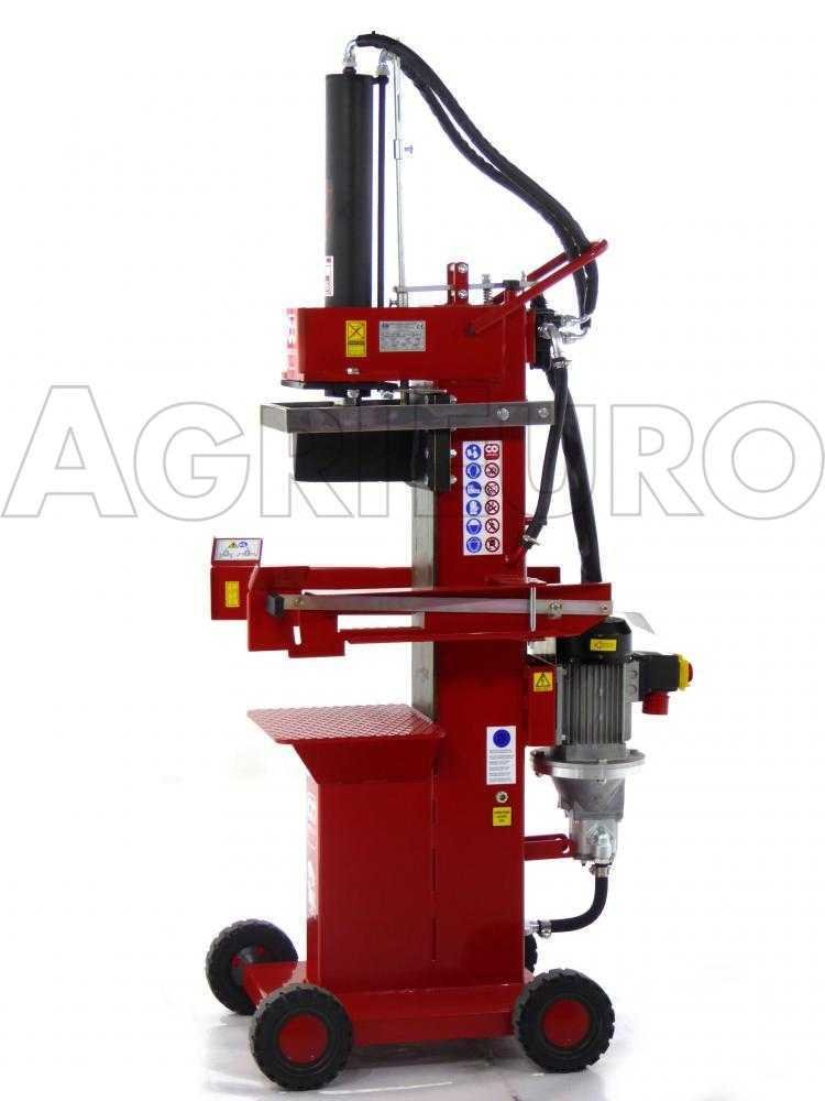 A fendeira é equipada com arco protetor, comandos bi-manual CE, sistema de bloqueio automático do retorno e ajuste do curso do pistão, permitindo maior rapidez no trabalho com toras curtas. As rodas robustas (Ø 27 cm) facilitam a movimentação, mesmo com seu peso superior a 200 kg.