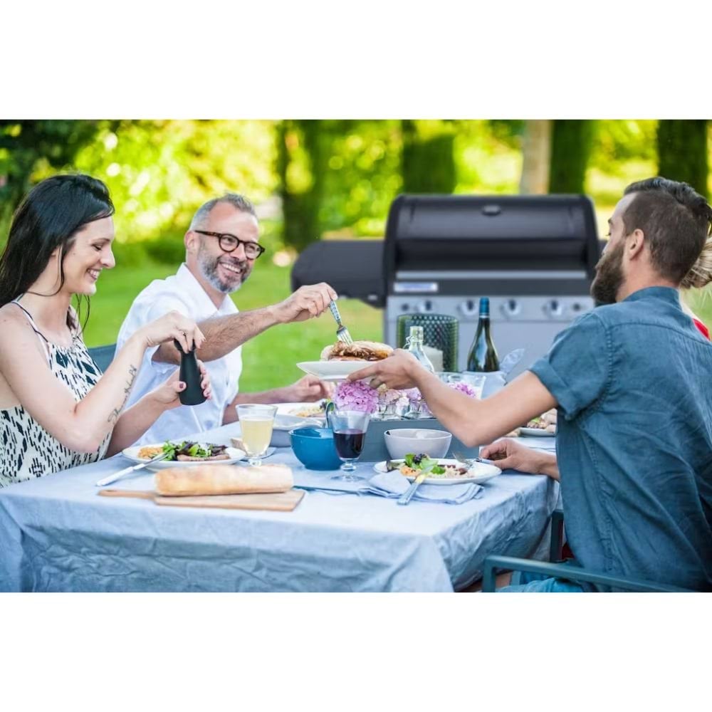 A Churrasqueira a Gás BBQ 4 Series Classic LS Plus Campingaz 2000015644 é uma solução robusta para churrascos ao ar livre, perfeita para 12 a 16 pessoas. Equipada com 4 queimadores em aço inoxidável que entregam uma potência total de 15,1 kW (12,8 kW principais + 2,3 kW do fogão lateral), permite ajustes independentes para cozinhar pratos variados. A superfície de cozedura de 78×45 cm (3500 cm²) é composta por ferro fundido esmaltado, com configuração Culinary Modular (grelha + chapa reversível), ideal para grelhar ou usar acessórios como pedra de pizza. Possui tecnologia Even Temp® para calor uniforme, sistema InstaClean® para limpeza fácil, ignição piezo, termómetro na tampa, bandeja de gordura removível, 4 rodas com travão e mesas laterais dobráveis. Com peso de 60,1 kg, é ideal para entusiastas de churrasco que buscam versatilidade e praticidade em eventos ao ar livre.