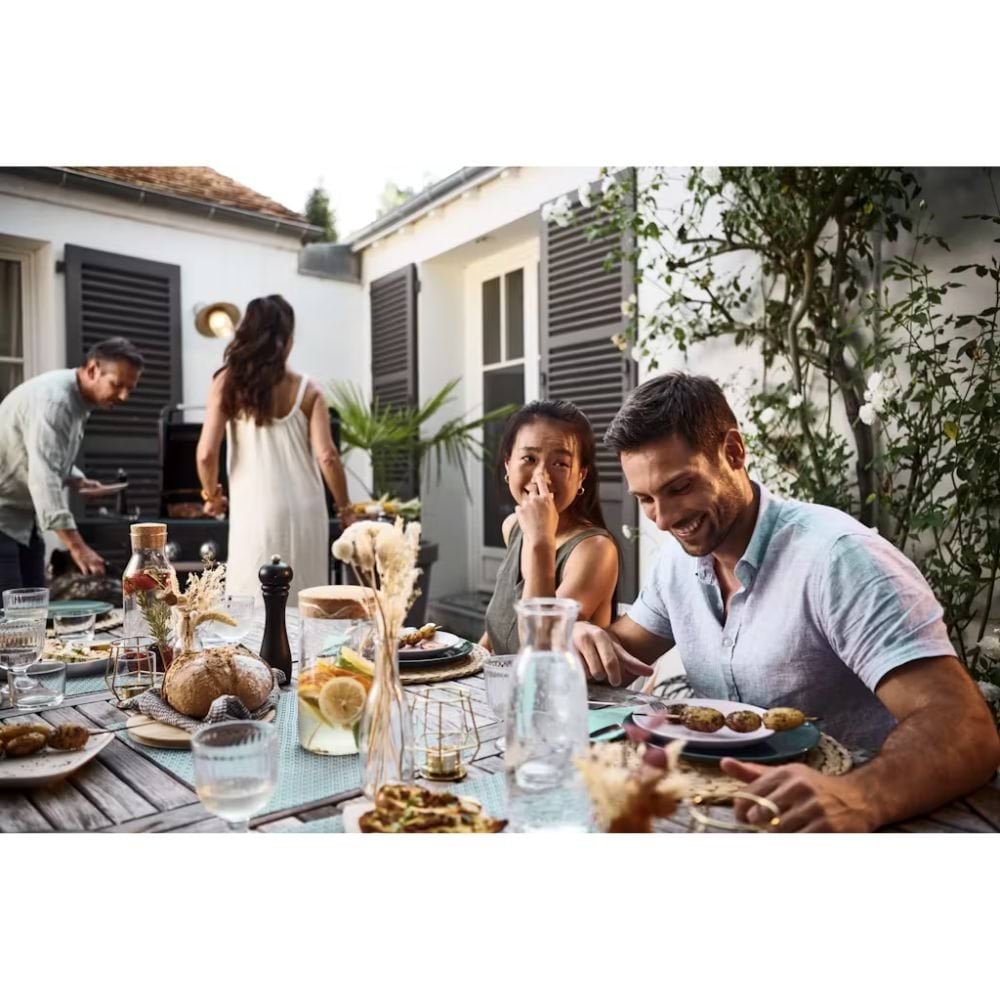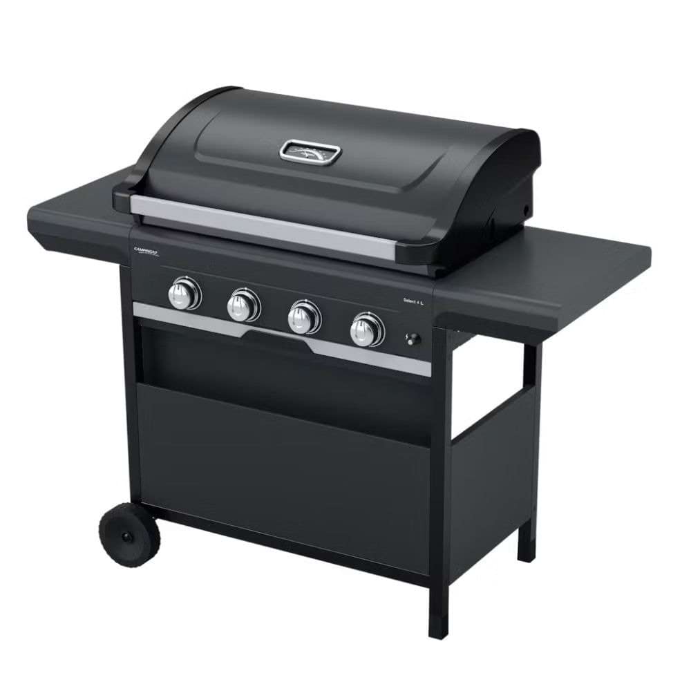 Com 4 queimadores potentes (12 kW), grelha de ferro fundido esmaltada e sistema InstaClean, reduz chamas e simplifica a limpeza com seu coletor frontal de gordura. Equipado com acendimento piezoelétrico, termômetro na tampa, mesas rebatíveis, porta-especiarias e 2 rodas robustas, é ideal para famílias grandes em jardins ou campings.