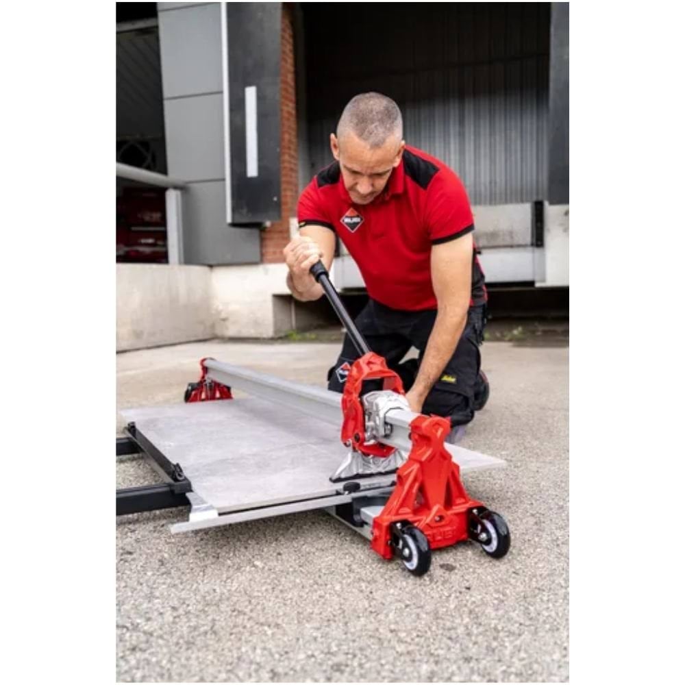 O Cortador RCH-1200 Rubi 27925 é uma ferramenta manual de alta precisão, projetada para profissionais que trabalham com azulejos cerâmicos, grés porcelânico e outros materiais de grande formato. Com uma estrutura em alumínio leve e resistente, permite cortes retos de até 120 cm e cortes diagonais em peças de até 85×85 cm. Sua guia em forma de T proporciona visibilidade otimizada do rodel, garantindo cortes mais precisos. O suporte lateral duplo oferece estabilidade adicional para trabalhar com grandes formatos, enquanto o separador de 950 kg permite cortes limpos em materiais de até 18 mm de espessura. Inclui maleta estuche para transporte e proteção, sendo ideal para obras de construção e renovação que exigem cortes precisos e intensivos.