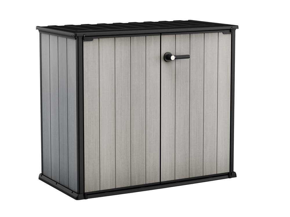 Keter Patio Store 139,5x77x120 cm. Armário de jardim em DUOTECH™, compacto e robusto, com rampa, portas duplas e capacidade de 1000 L.