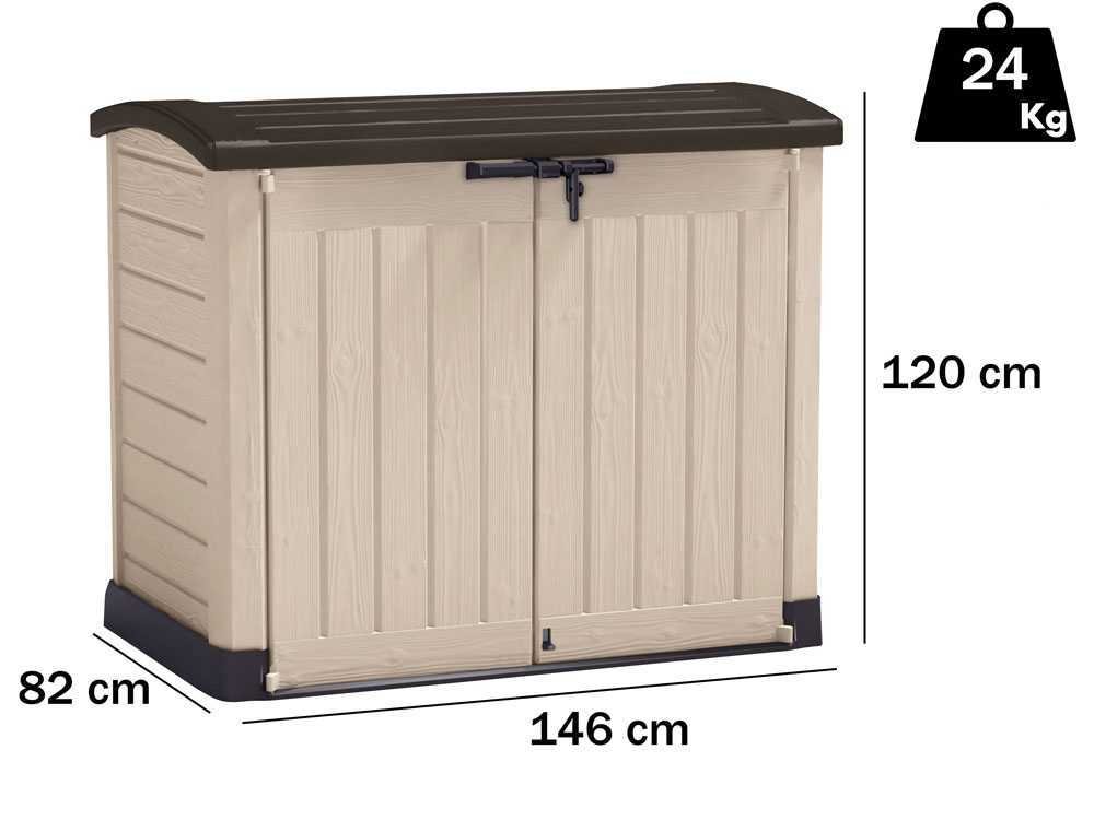 Keter Store-It-Out Arc Bege 146x82x120 cm. Armário de jardim em resina 1200 L, robusto, com portas duplas, tampa superior e rampa de acesso.