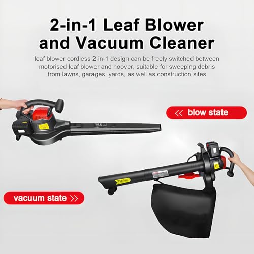 - 【Souffleur de feuilles et aspirateur 2 en 1】La conception 2 en 1 du souffleur de feuilles sans fil peut être librement commutée entre le souffleur de feuilles motorisé et l’aspirateur, adaptée pour balayer les débris des pelouses, des garages, des cours, ainsi que des chantiers de construction, profitez de la flexibilité et de la polyvalence de ce souffleur de feuilles sans fil