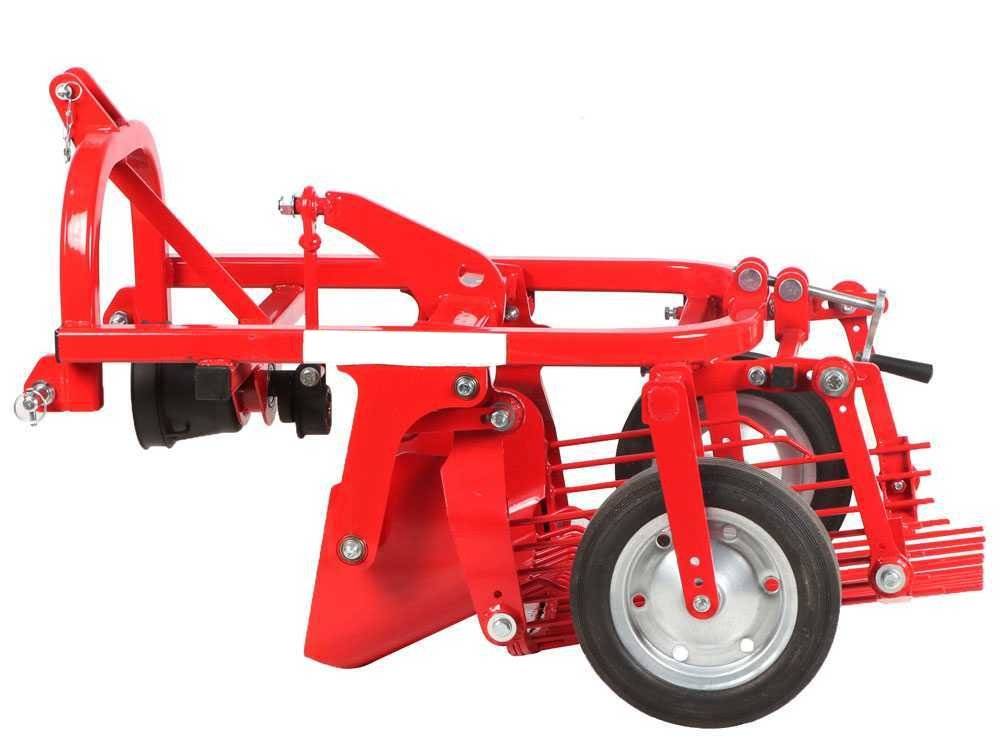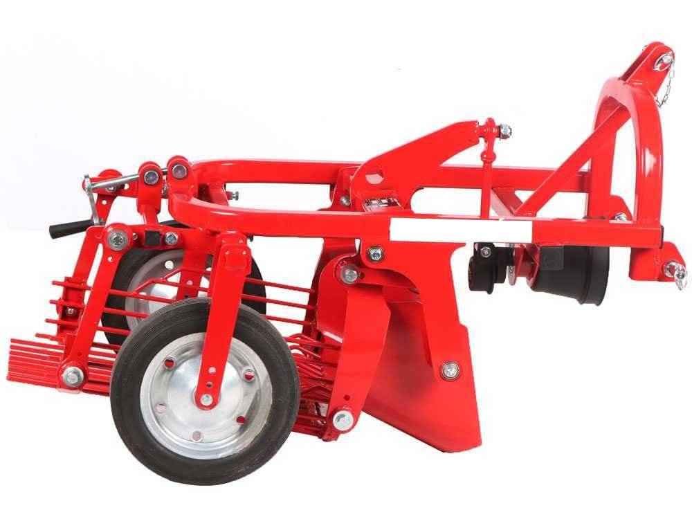 Equipada com um soc vibratório de profundidade regulável, levanta a terra e as batatas, que são depois separadas da terra através da tremonha vibratória. A profundidade é ajustada pelas rodas traseiras de apoio, permitindo adaptar-se facilmente a diferentes condições de solo.