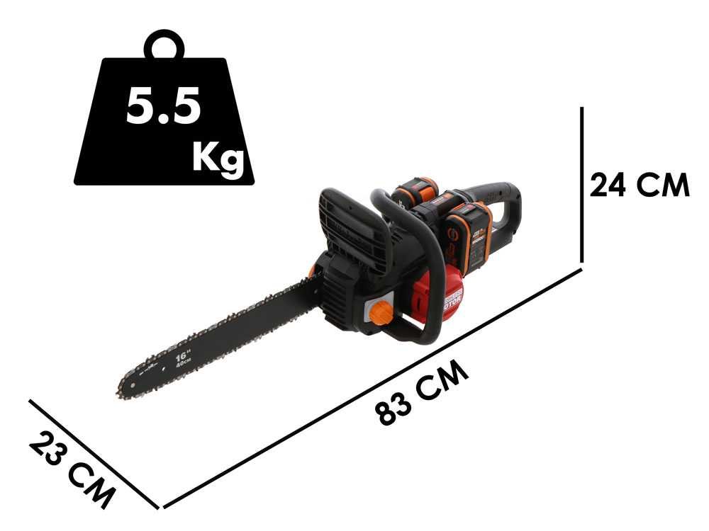 Le point fort de cette tronçonneuse sans fil est la longueur exceptionnelle de la lame qui est de 40 cm et qui et en mesure d’atteindre une vitesse de 18 m/s.