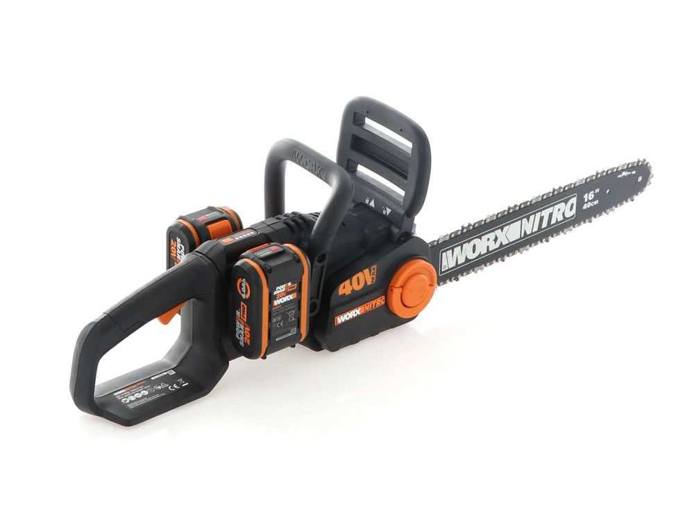 La tronçonneuse à batterie WORX WG385E 40V a batterie de 4 Ah est l’outil idéal pour couper branches et troncs grâce aux batteries PRO, beaucoup plus fiables et durables que les batteries classiques.